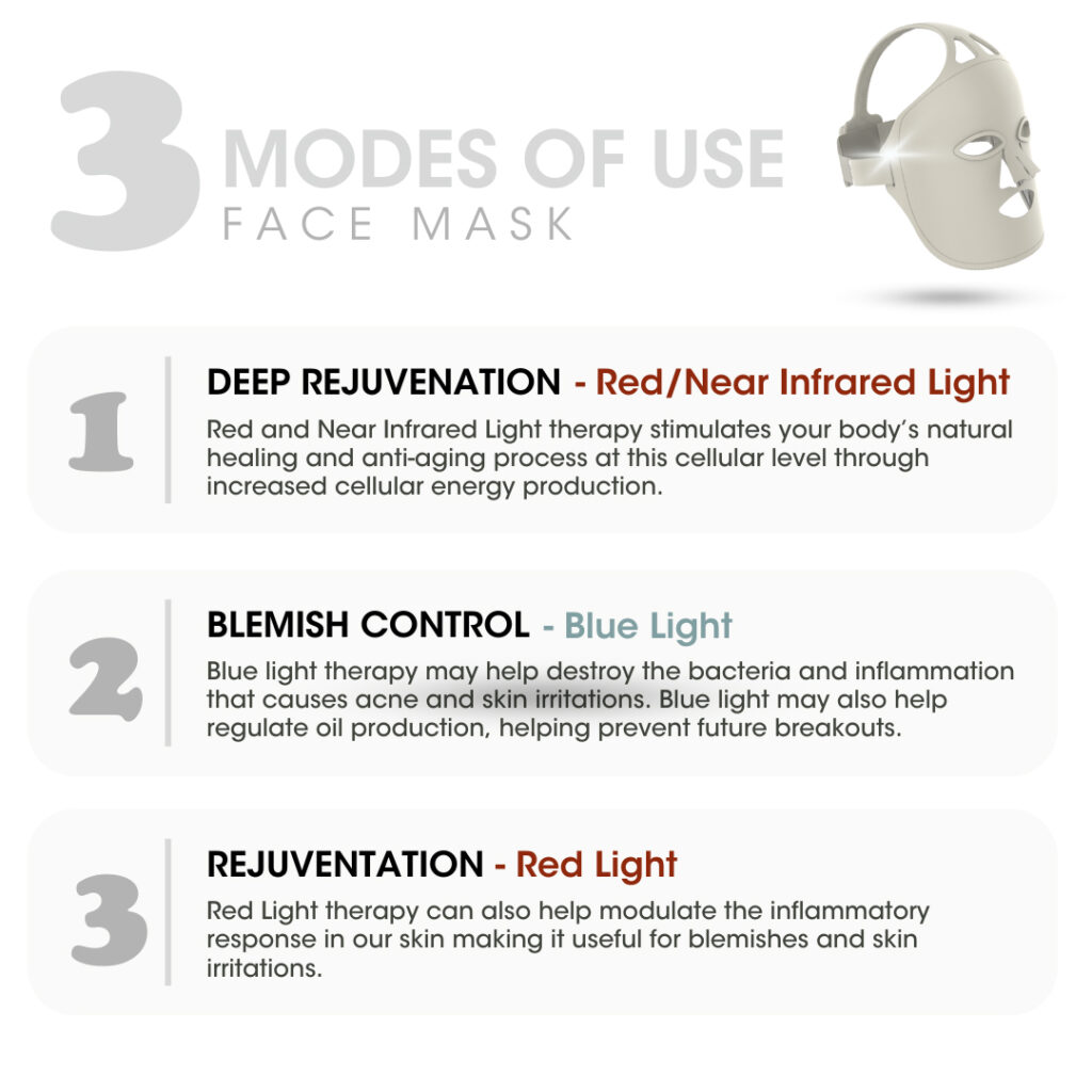 Mode 1 – Deep Rejuvenation, Red/Near Infrared Light – 630 nm & 830nm