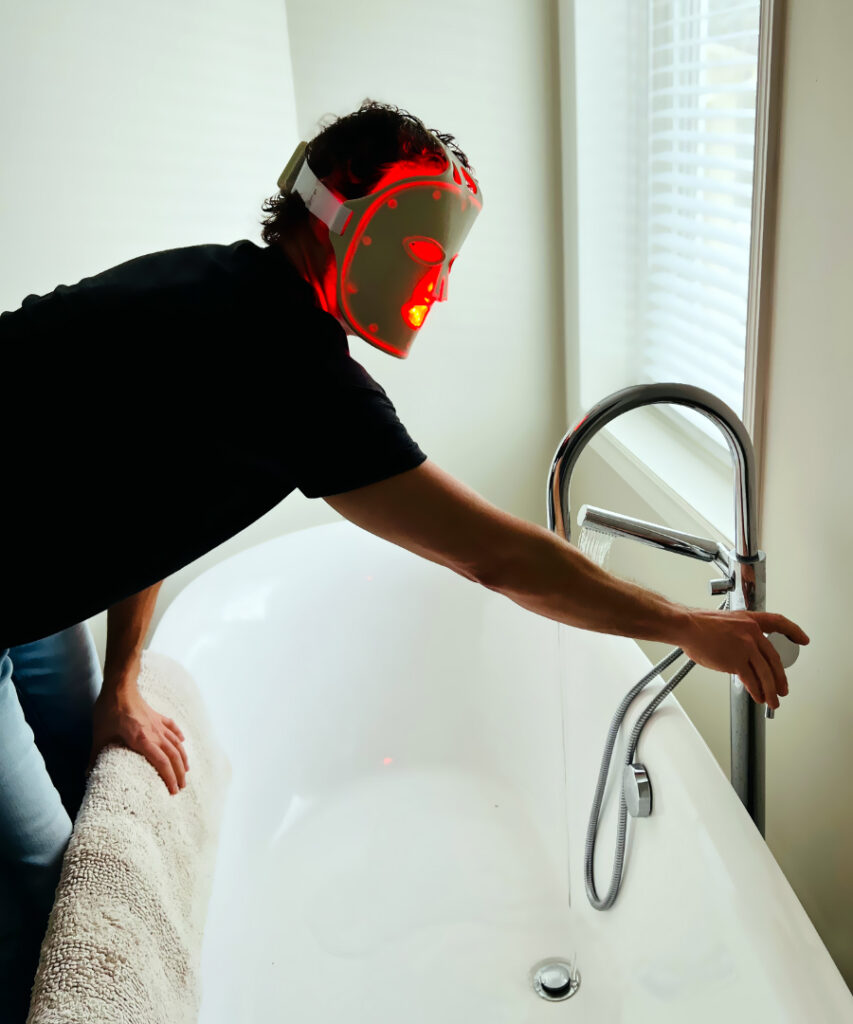 3. Place your fringe light therapy mask over your face.