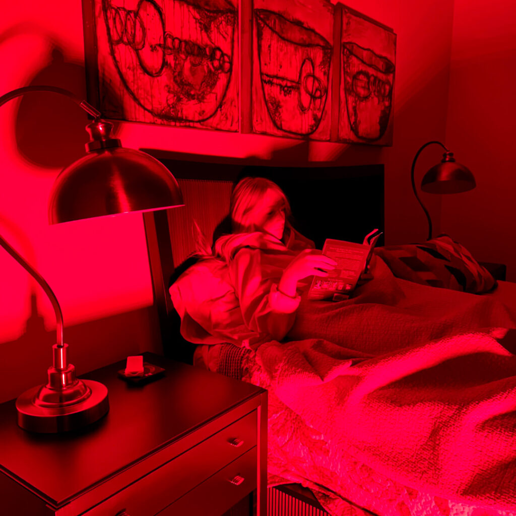 As an alternative to bright lights in the evening, consider using the RED light for evening lighting 30-60 minutes before bed or as an alternative to home lights after the sun sets.