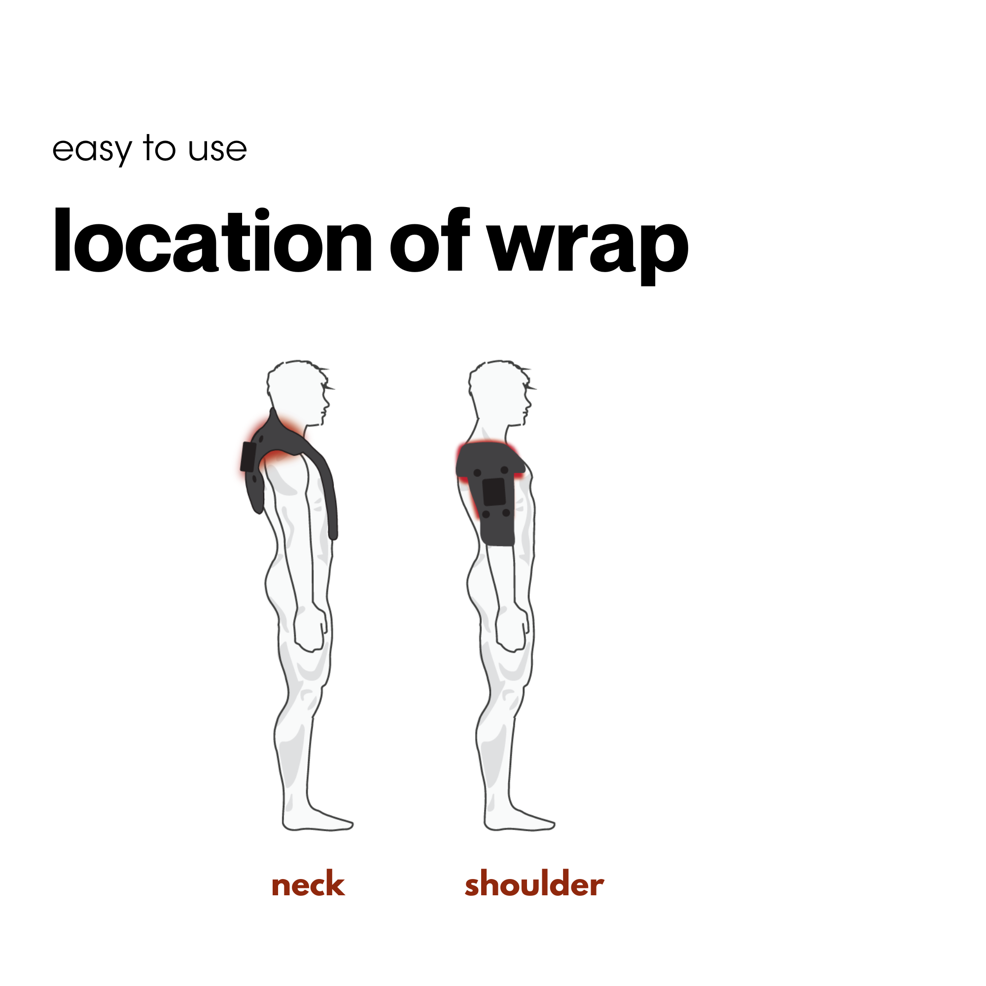 Place the wrap with direct skin contact over the area where you are needing extra help, pain relief, blood flow, or reduced inflammation. You can use any wrap on any part of your body- head to toe!